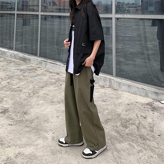 Loose fitting workwear pants fabric: polyester. Hand wash or machine wash, please do not soak women's pants in water for a long time, do not use chlorine bleach for washing, do not bleach, do not wash with hot water, do not dry